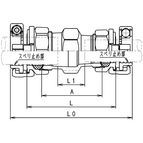 ●離脱防止金具付きで、管の抜けを防ぎます。