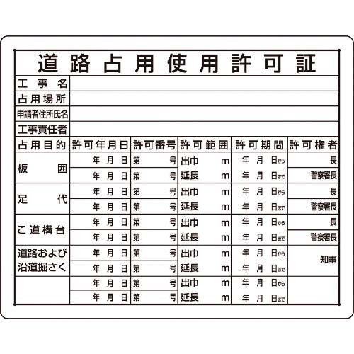 ユニット 法令許可票 道路占用使用許可証 302-10A