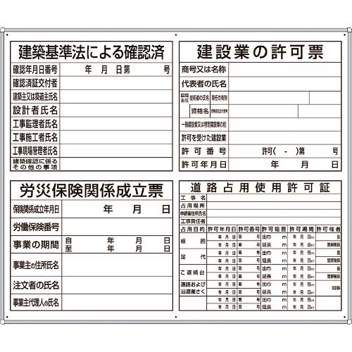 【仕様】●表示内容:建築基準法による確認済、建設業の許可票、労災保険関係成立票、道路占用使用許可証