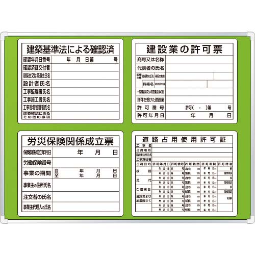【仕様】●表示内容:建築基準法による確認済、建設業の許可票、労災保険関係成立票、道路占用使用許可証