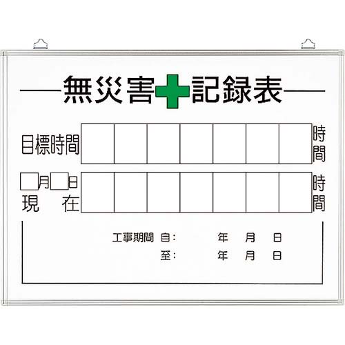 【特長】●無災害継続時間を表示できるゴムマグネット貼付タイプの記録表です。