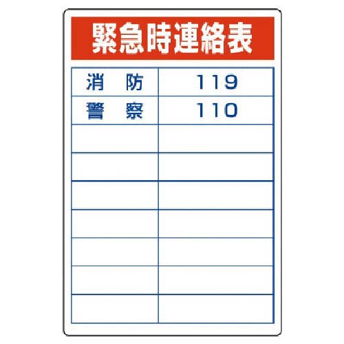 ユニット 酸欠危険標識 緊急時連絡表・エコユニボード・450X300 814-57