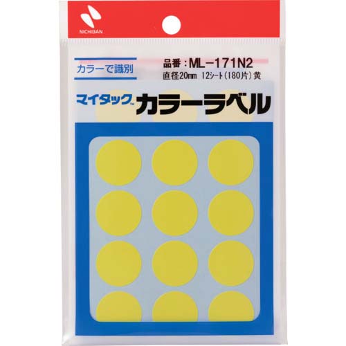 | 商品名 | ニチバン マイタックラベル (カラーラベル)ML-171N2 黄 丸20mm ML-171N2 |