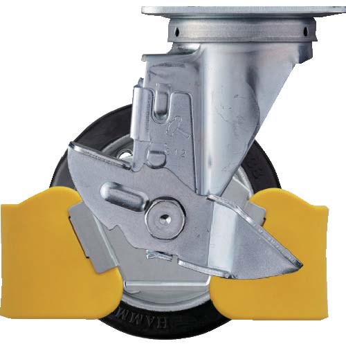 | 商品名 | ハンマー フットガード付 旋回式ゴム車輪(スチールホイール・ローラーベアリング)125mm ストッパー付 413S-RB125WY3 |