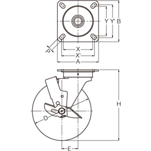 | 商品名 | ハンマー プレート式キャスター 自在(ストッパー付) ゴム車輪(ラジアルボールベアリング入) 車輪径200mm 400S型 419S-RBB200 |