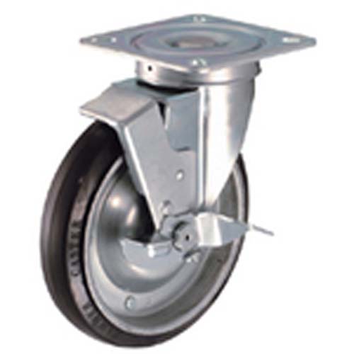 ハンマー プレート式キャスター 自在(ストッパー付) ゴム車輪(ラジアルボールベアリング入) 車輪径200mm 400S型 419S-RBB200
