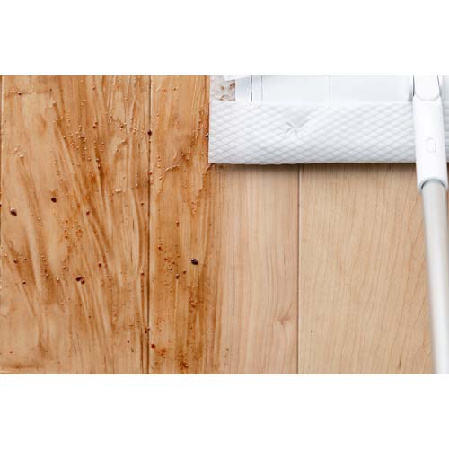 ●洗浄液は泡立ちにくい特性を持つ界面活性剤を適量配合し、拭き取り後も泡立ちにくく、床をすばやく乾燥してきれいに仕上げます。