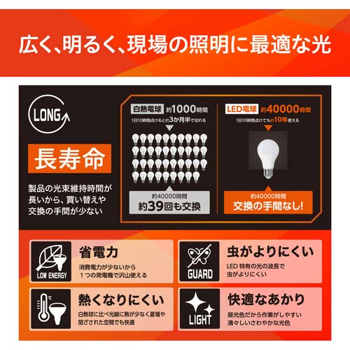 【特長】●シーンに合わせて照らし方が選べる屋内用作業ライトです。