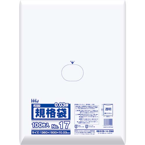 | 商品名 | ハウスホールド 規格袋17号 透明 100枚 0.030 JS17 |