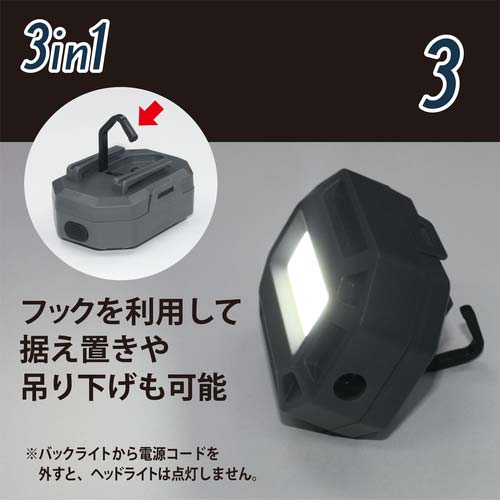 【特長】●バックライトが取り外し可能でヘッドライト/ワークライト/ハンドライトとして使用可能です。