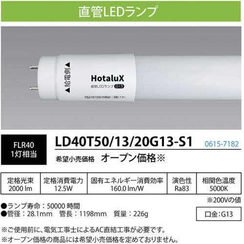 | 商品名 | HotaluX 直管LEDランプ 40形 昼白色 2000lm 口金G13 LD40T50/13/20G13-S1 |