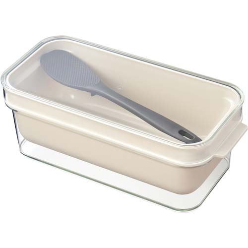 【仕様2】●素材 外容器・フタ : 飽和ポリエステル樹脂(耐熱温度80℃・耐冷温度-20℃)、 内容器 ・しゃもじ: ポリプロピレン(耐熱温度110℃・耐冷温度-20℃)