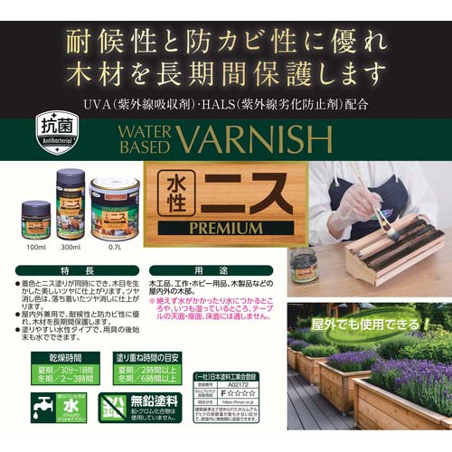 【用途】●木工品、工作・ホビー用品、木製品などの屋内外の木部に。