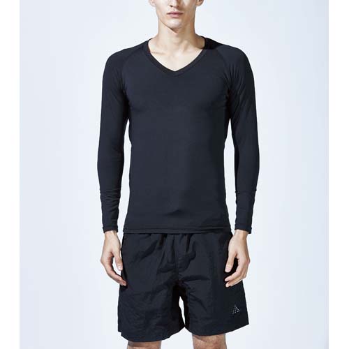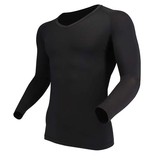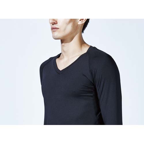 おたふく BT冷感・消臭 パワーストレッチ ロングスリーブ Vネックシャツ ブラック JW-639