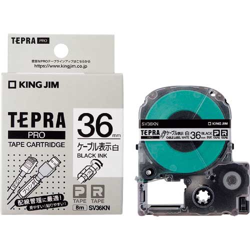キングジム テプラPROテープカートリッジ ケーブル表示ラベル 白ラベル/黒文字 SV-KN