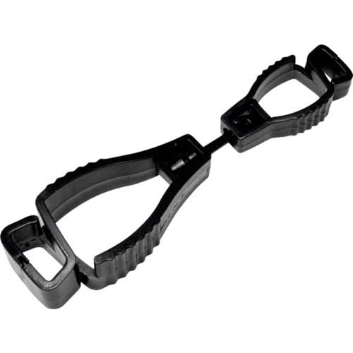 ●小さい方のクリップをベルトループに挟んで取り付け、大きい方のクリップにグローブなどを挟んで使用します。