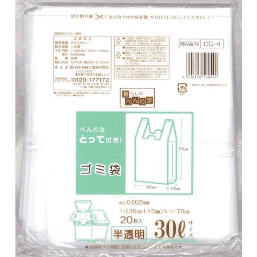 商品名 日本技研工業 暮らし便利学 とって付ごみ袋 半透明 CG
