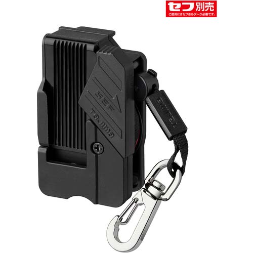 ●表はセフホルダー、裏はセフフック 細かい作業なしで安全ロープごと工具交換ができます