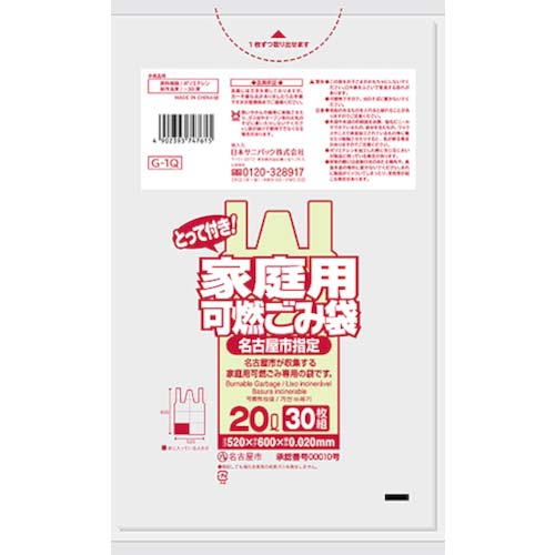 | 商品名 | サニパック 名古屋市指定袋 家庭用可燃 とって付き 半透明 G |