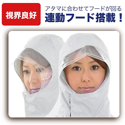 ●フードは透明シールドタイプで、連動フード仕様。