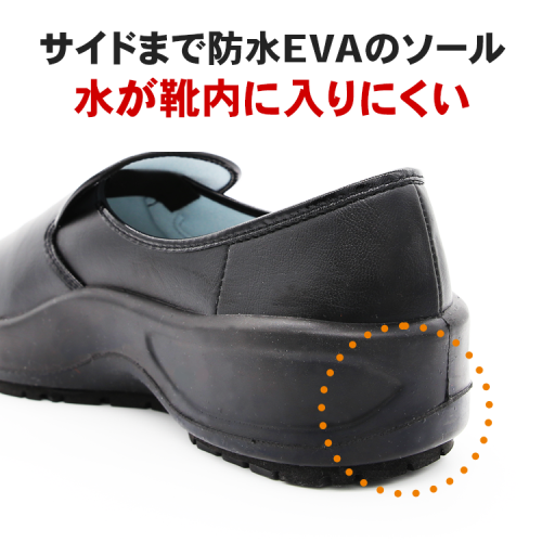 - ぬれた場所でも滑りにくく、撥水性があるため通勤のレインシューズとして使われる方もいます。しかし完全には浸水を防げませんのでご注意くださいませ。
