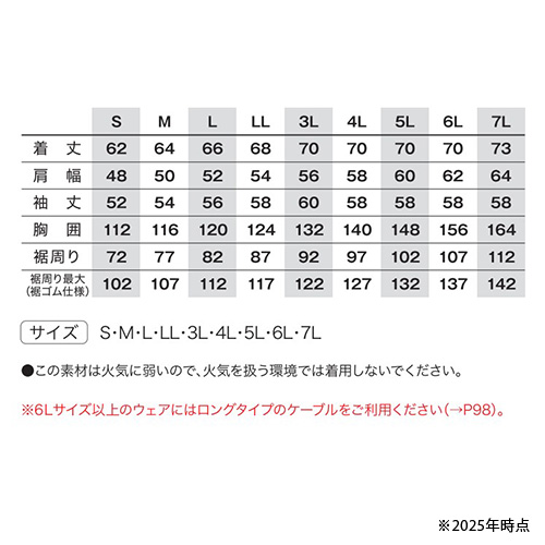 | 商品名 | 空調服 ポリエステル製ワーク空調服 ウェアのみ KU90540 サイズ一覧 |