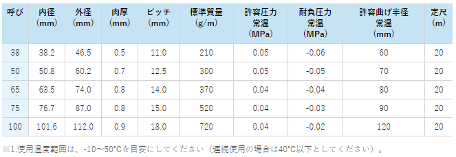 ●その他一般集塵用や送・排気用※油分が含まれる食品や流体の輸送には適していません。