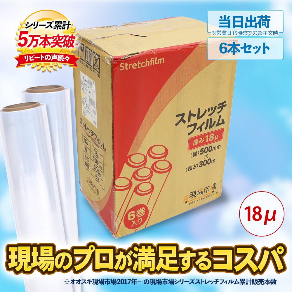 | 商品名 | 現場市場 ストレッチフィルム 18μ 500mm×300m OSK-SF18 |