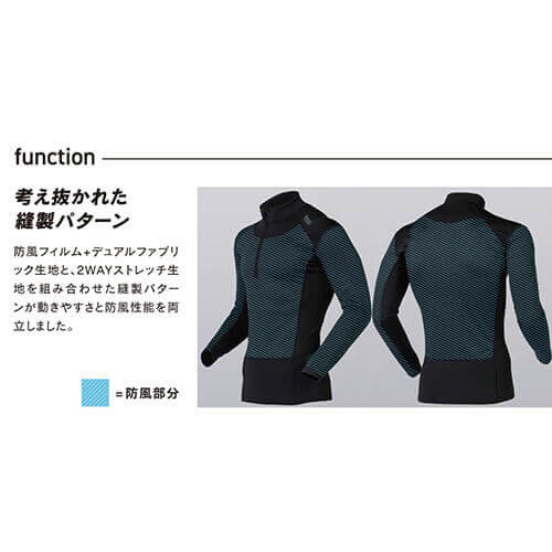 ●動きやすさと防風性能を両立を可能にした縫製パターンを取り入れています。