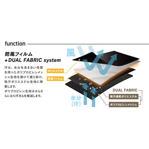 ●汗を保持せず外側の生地に逃がすため肌面はさらさらになり、汗冷えを軽減します。