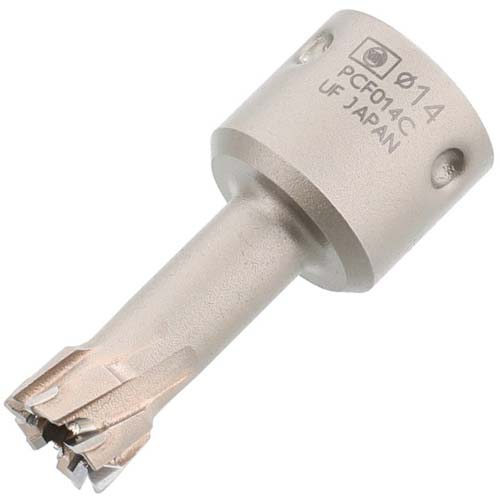 ●厚さ30mmまでの鋼板、ステンレス版、鋳鉄などへの穴あけ作業に。(厚さ12mm以上の鋼板、ステンレス版、鋳鉄への穴あけおよび刃先径36mm以上をご使用の場合は、ボール盤での穴あけをおすすめします)