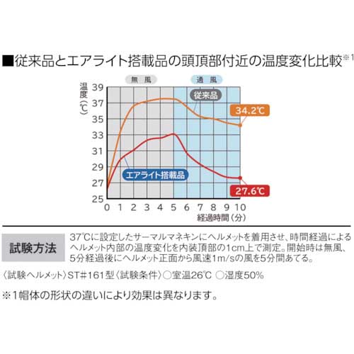 【特長】●ヘルメット内部に空間を作ることによりスムーズに換気し、温度や湿度の上昇を防ぎます。