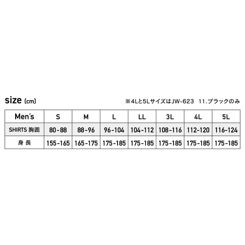 おたふく 冷感 消臭 パワーストレッチ長袖ハイネックシャツ JW-625 サイズ一覧