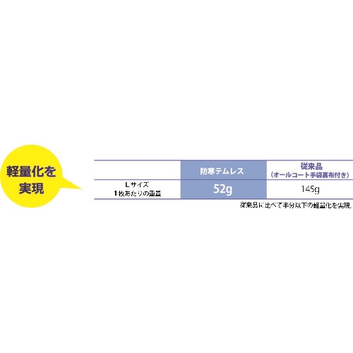 ●特殊樹脂をコーティングしているため、高いスベリ止め効果を発揮します。【用途】●寒冷地、冷凍庫、冷凍室内での作業。