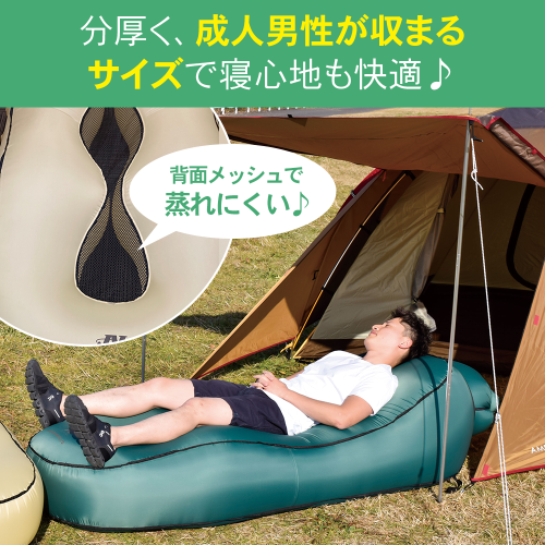 【特長】●充電式エアポンプ内蔵のエアソファベッドです。