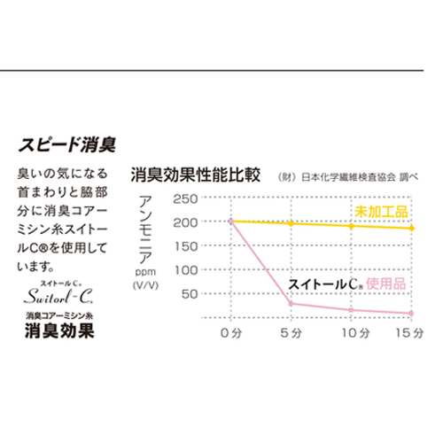 ●臭いの気になる首回りと脇部分に消臭コアーミシン糸を使用しています。