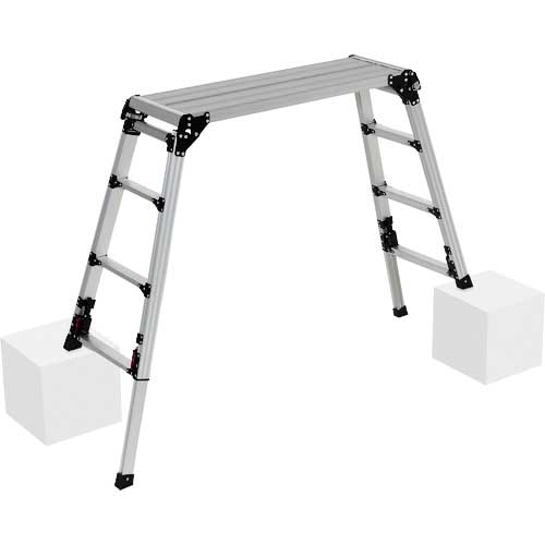 【特長】●立ったまま伸縮できる上部操作式4脚アジャスト式足場台です。