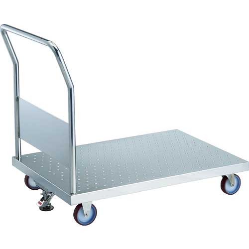 | 商品名 | TRUSCO オールステンレス製運搬車 オールステンレスエンボス天板台車 (固定ハンドルタイプ・ナイロンウレタン車輪) ストッパー付 AS-EM 100NU-S |