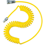 塗装、吹き付けエアー用、工場内エアーツール用特徴コイル巻きだから作業範囲が拡大!折れにくく、耐摩耗性に優れています。手元部分がストレートなので手元ホースが要りません。仕様・流体:空気、使用温度範囲 -40℃〜+80℃、最高使用圧力(Mpa at20℃):0.7、材質:ポリウレタン製、定尺:6.0m、内径(mm):5.0、外径(mm):8.0、使用範囲(m):2.0、両端使用金具:G 1/4メス