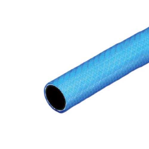 家庭用給水用具、家庭用散水用具として特徴 ツインネット構造とスジ入り加工により、ねじれにくく折れにくい。仕様 流体:水、使用温度:0〜60℃、使用圧力(環境温度23℃時):0.90MPa、材質:PVC・ポリエステル糸、色:ブルー