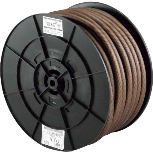 一般家庭水道散水用。特徴レトロ調カラーの落ち着いたブラウンカラーホースです。ホース表面に特殊表面処理を施していますので、ホースがベトつきません。糸入りホースの為、ノズル使用に最適です。中黒ホースなので紫外線をカットし、藻の発生を抑えノズルの目詰まりを防ぎます。仕様長さ(m):50、内径(mm):15、外径(mm):20、使用圧力(MPa):0.6、許容曲げ半径(mm以上):72