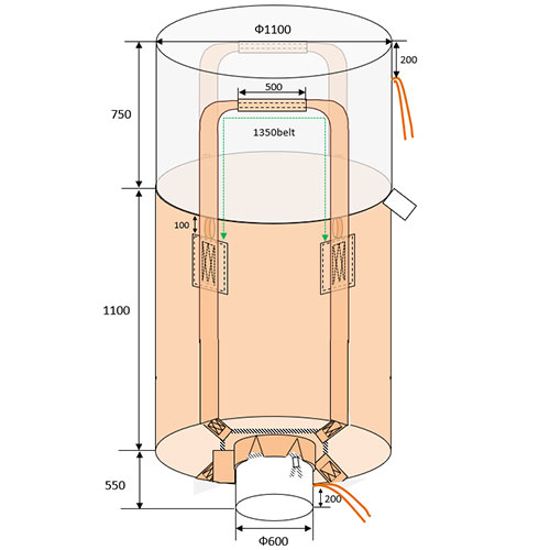 - 食品衛生法に適合したフレコンバッグです。米ぬかなどでご利用いただけます。