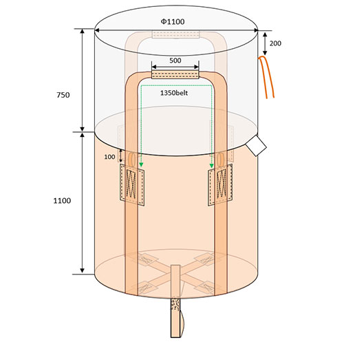 <用途>産業廃棄物/土嚢/紙類 <安全>検査機関による強度検査済み <安心>PL保険加入済 <仕様>反転ベルト付/ヴァージン材100% <寸法>1,100×1,100 <容量>1,000kg |