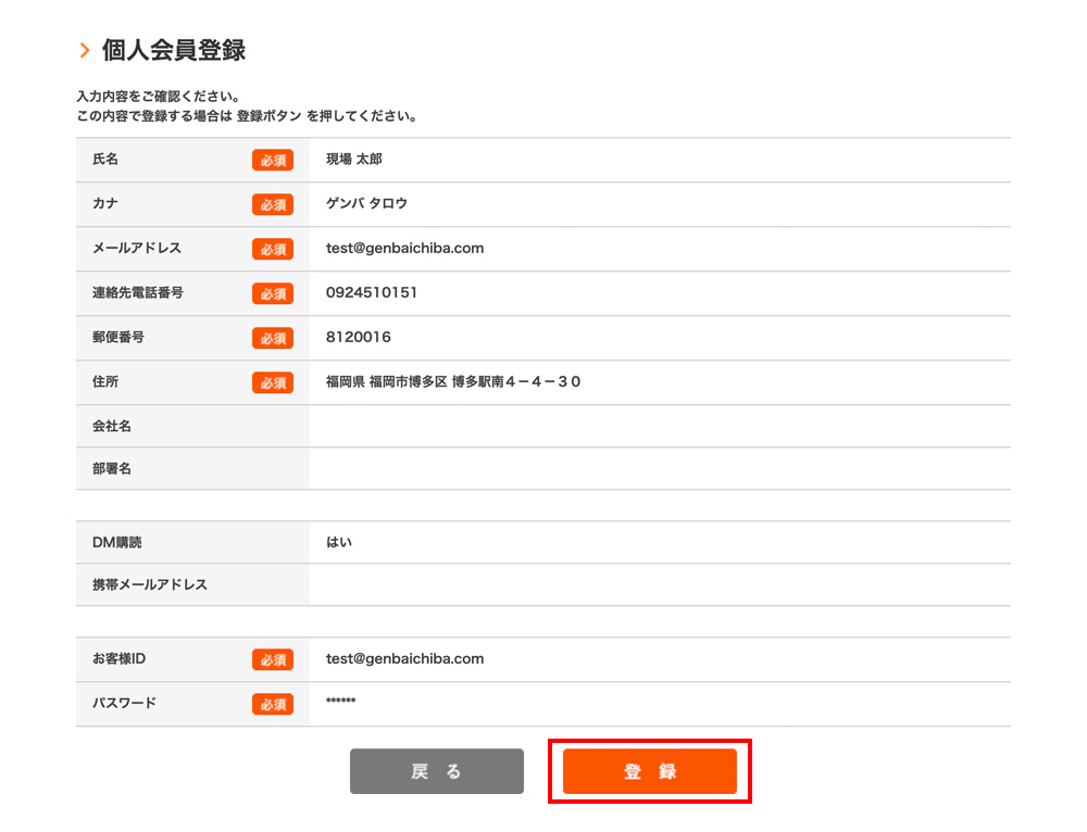 入力内容に間違いがないかご確認の上、よろしければ「登録」をクリックして下さい。