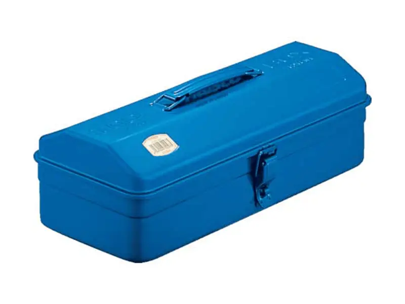 こちらも片開きで、ふたは山型になっているので内部で高さや厚みのある工具も収納しやすい工具箱です。