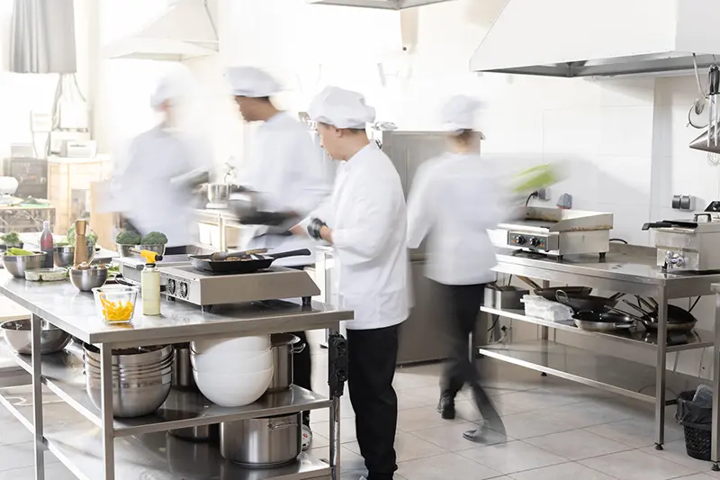 実は飲食店のキッチンや厨房は、以下の3つの理由でとても滑りやすい状態なんです。