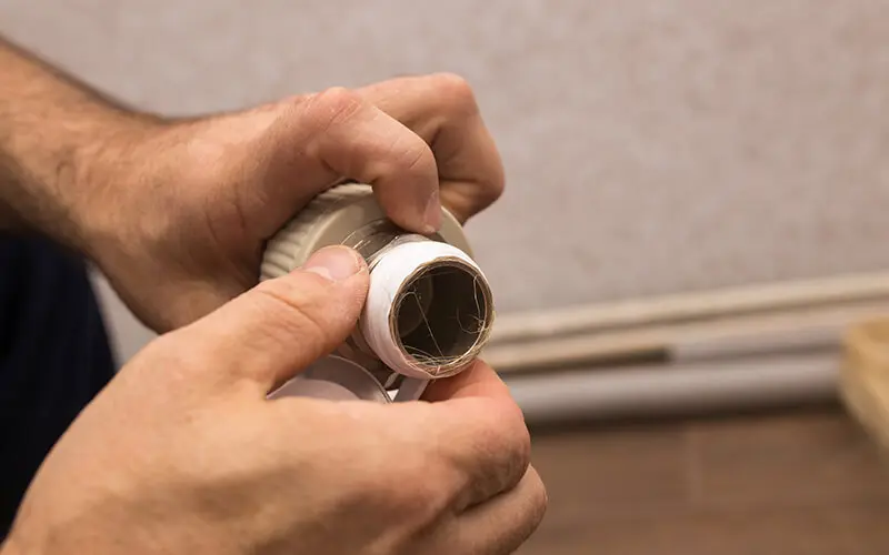 ほんのわずかな隙間であっても液体や気体は簡単に漏れ出てしまうため、シールテープなどを使って配管同士の隙間を埋める必要があるのです。