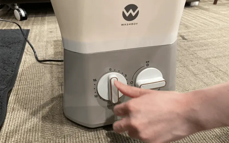 これがダイヤルですね。電源ボタンなどは無く、トースターのようにひねるだけで動くようです。これはお子様でも操作出来そうです。強さも洗濯するものに合わせて調整出来るみたいです。