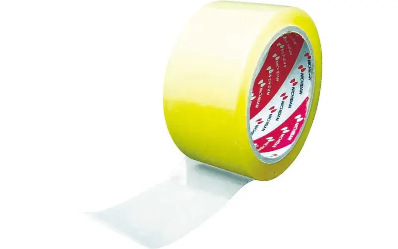 延伸ポリプロピレン (OPP) 製の透明なテープ。パーセルテープ (Parcel tape)、パッキングテープ (Packing tape)。
