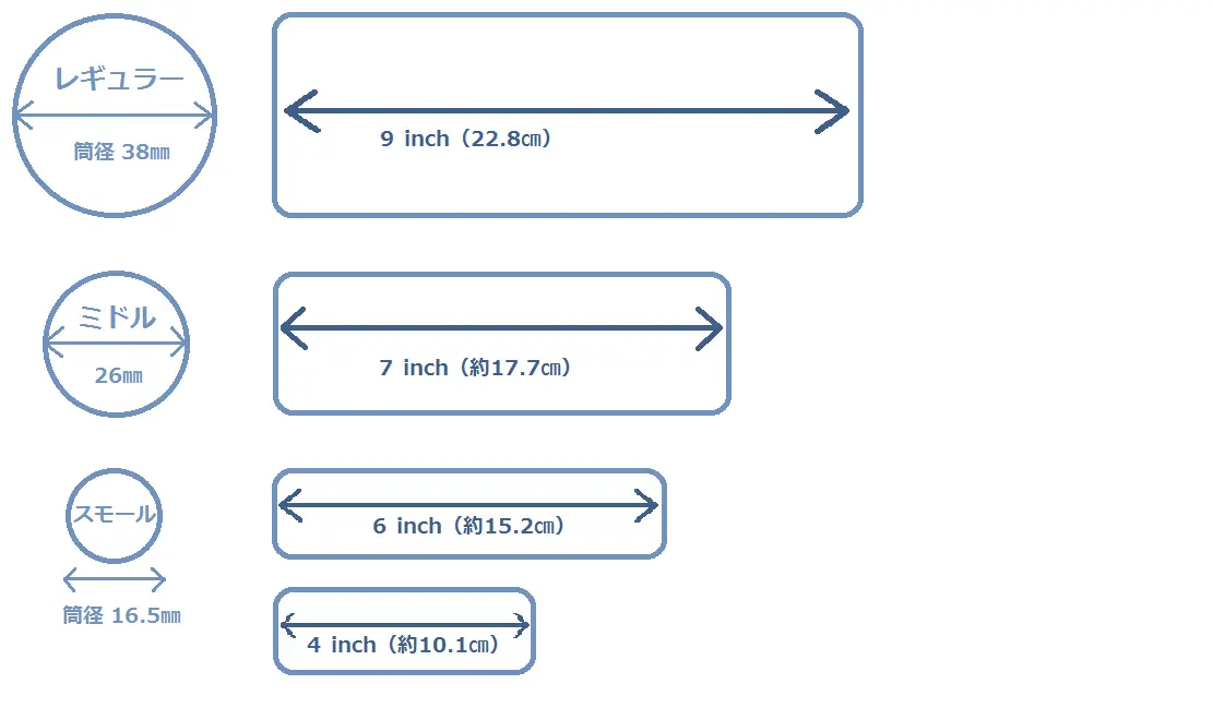 内径サイズとはローラーをはめる部位の直径のことで、スモール・ミドル・レギュラーの3サイズがあり、それぞれのサイズごとにローラーの幅も決められています。